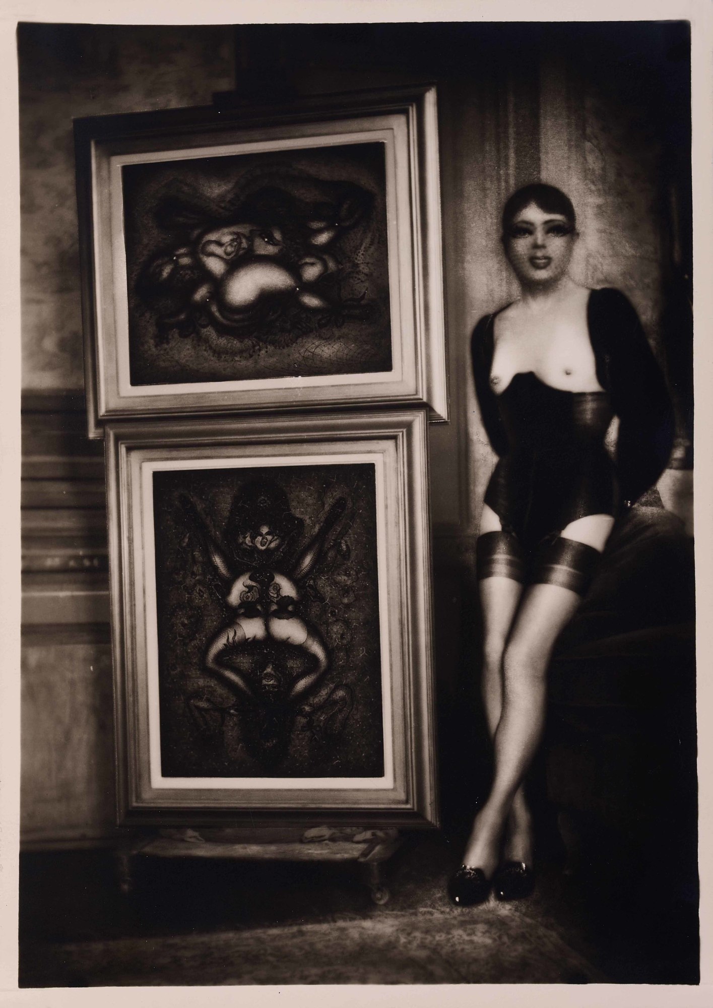 Curieuse: Verso signiert und betitelt: Pierre Molinier, Curieuse. Atelier- und Copyrightstempel. Auf Galerie-Etikett auf Rahmenabdeckung datiert: ca. 1960.