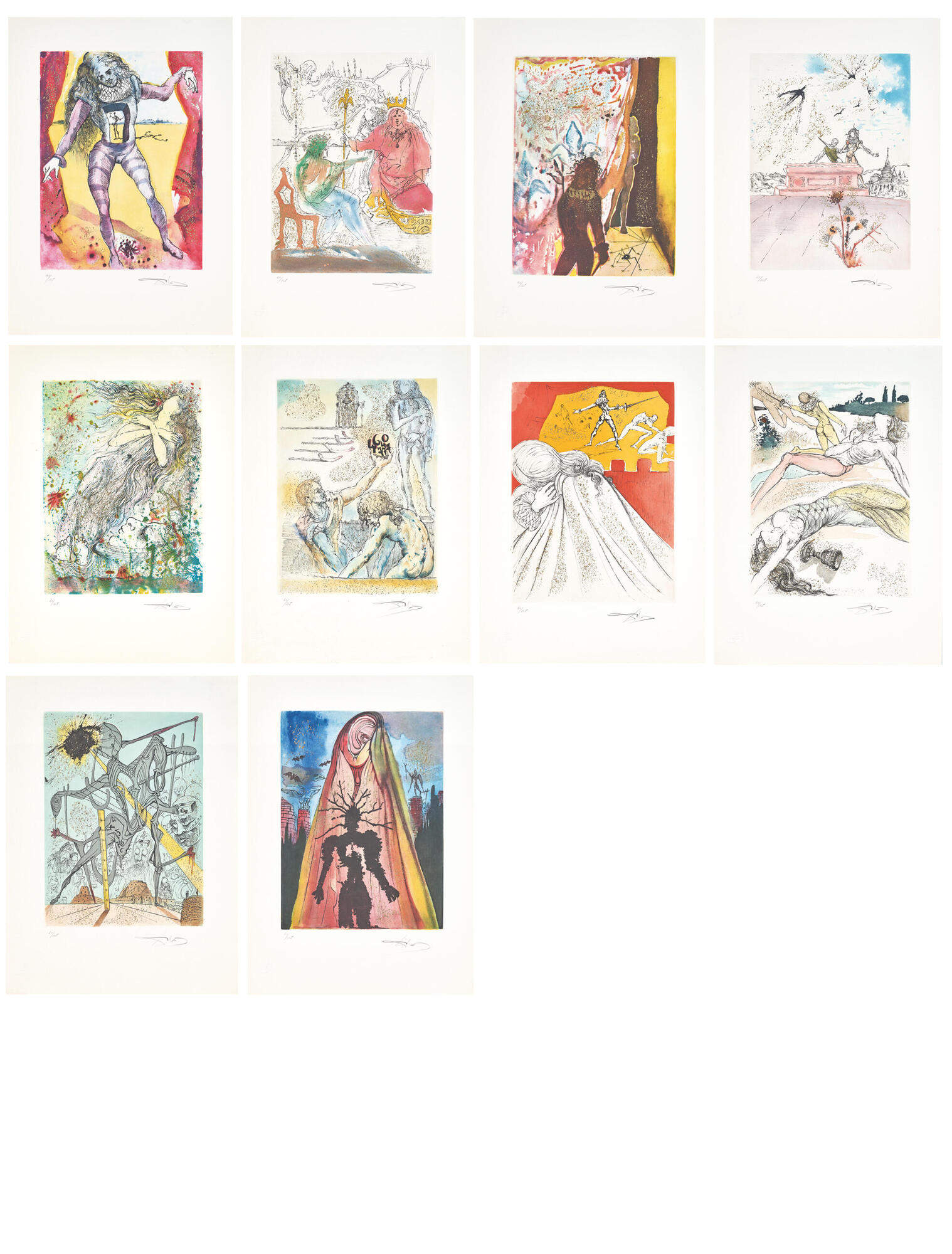 Alle Blätter. 40/145. Alle Blätter unten rechts signiert: Dalí. Impressum auf Englisch und Französisch. Blätter jeweils in betitelter Mappe.