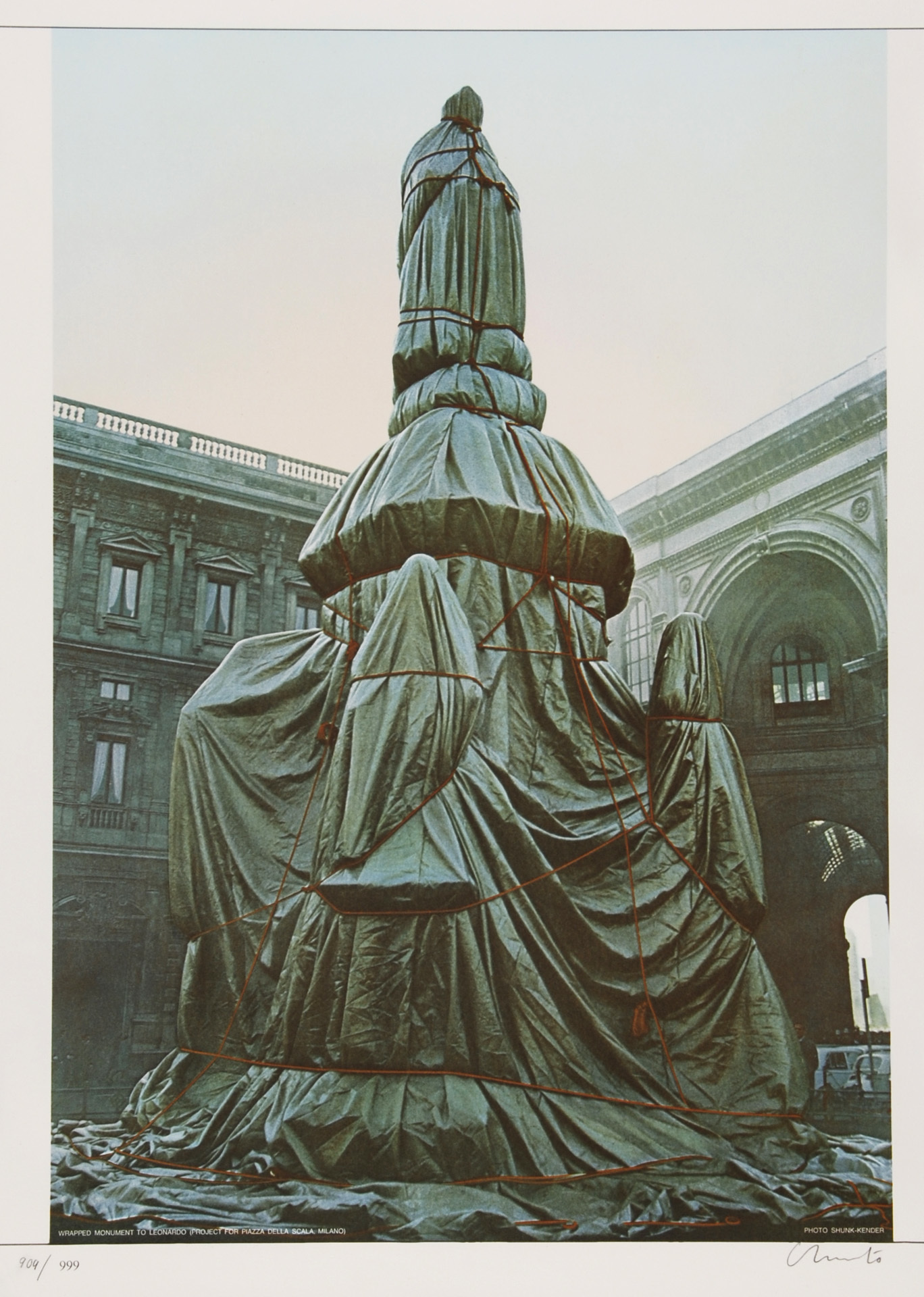 Christo, 2 Blätter: Wrapped Monument to Leonardo, Project for Piazza della Scala, Milan