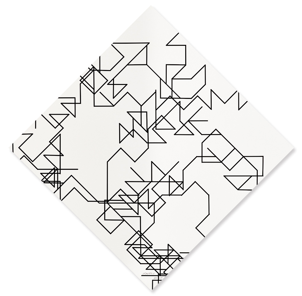 12/26. Unten mittig signiert: Morellet. Verso auf Metallplatte betitelt: π éparpillant 1 = 450 "détail".