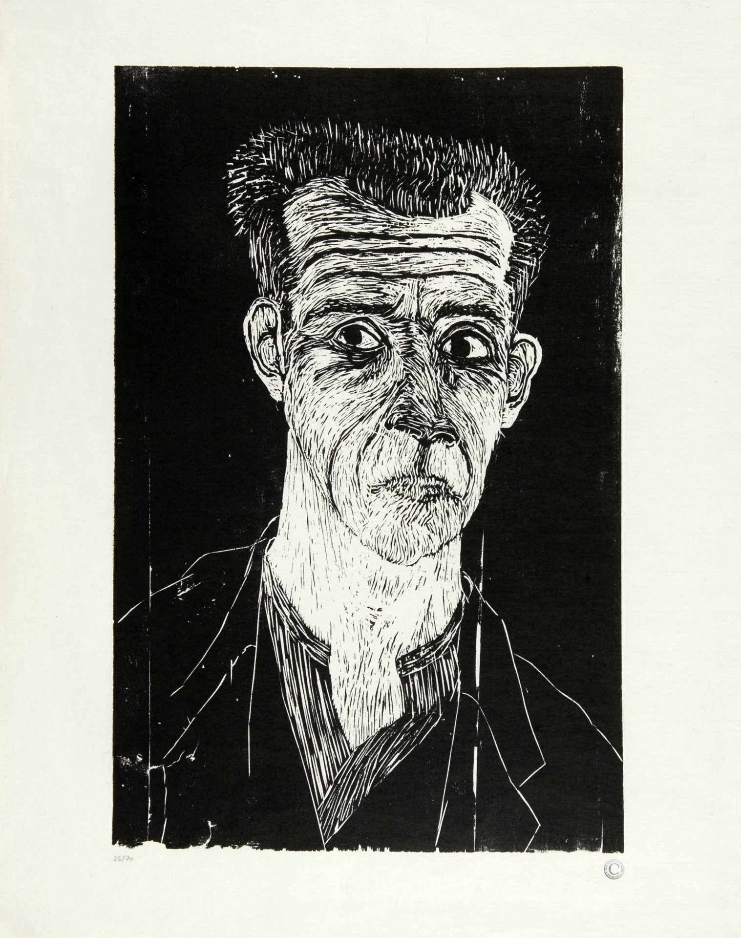 Dazu: Paul Camenisch. Selbstporträt. Holzschnitt.