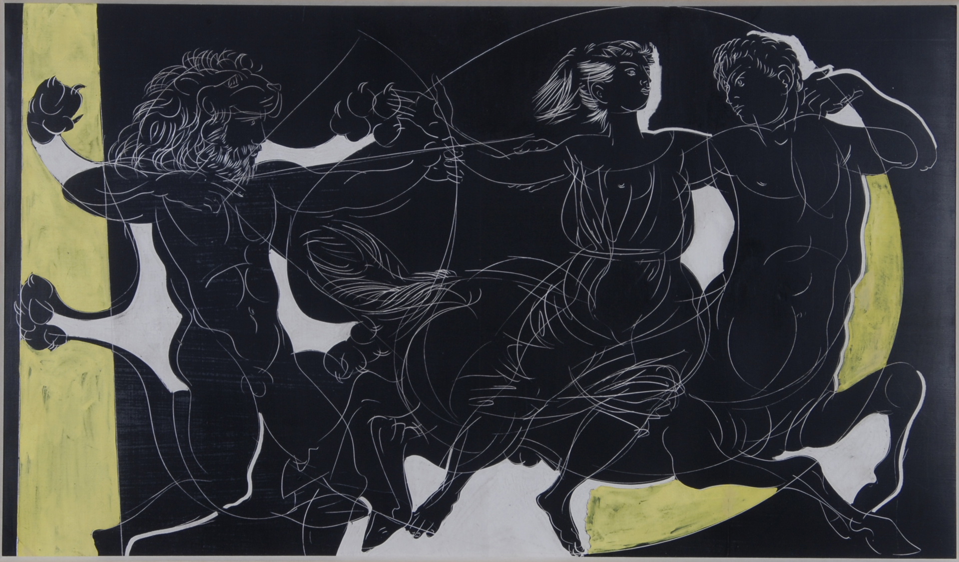 Ölkreide und Tempera auf Papier.