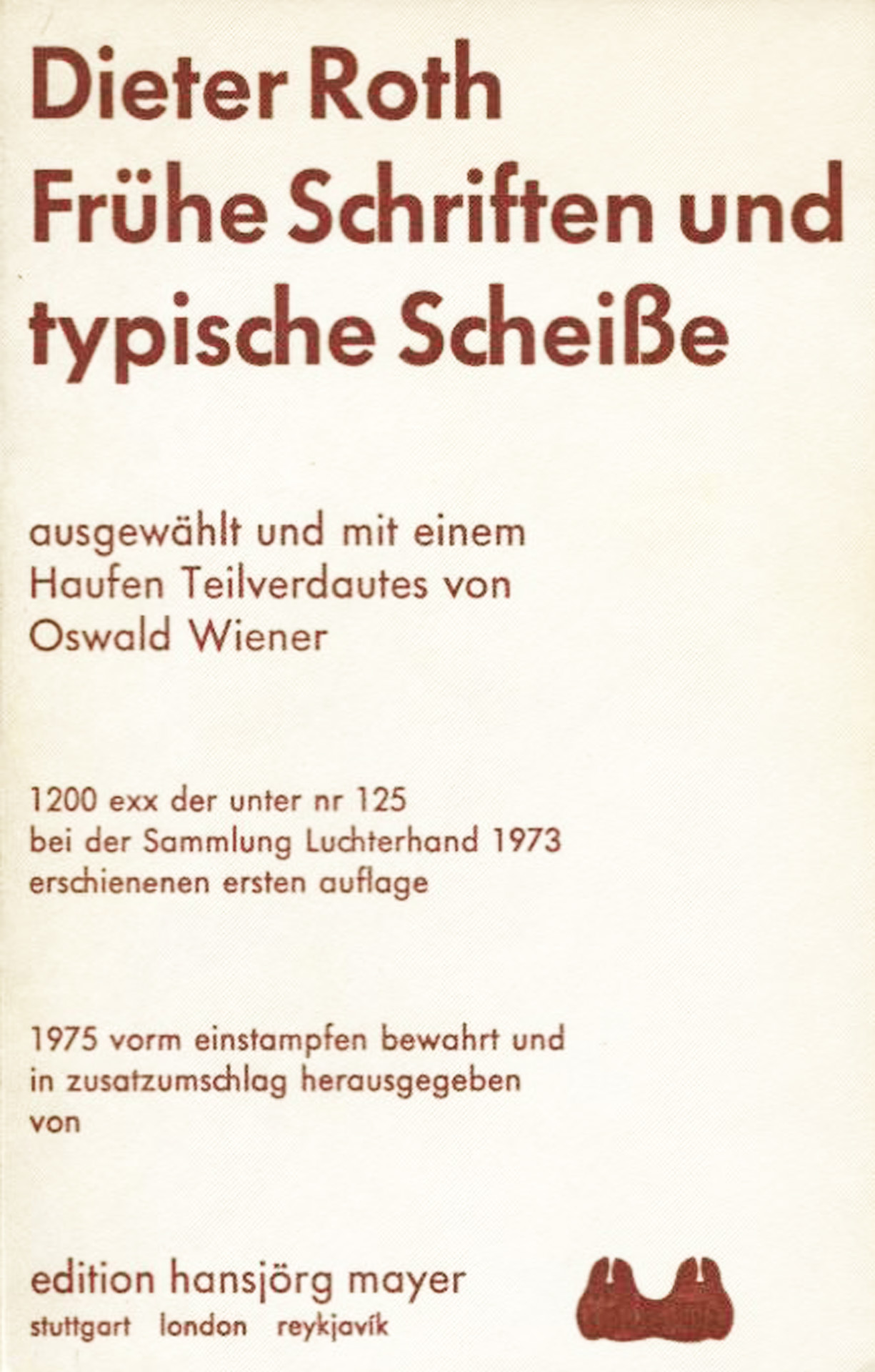 - Dieter Roth. Frühe Schriften und typische Scheisse, ausgewählt und mit einem Haufen Teilverdautes von Oswald Wiener.