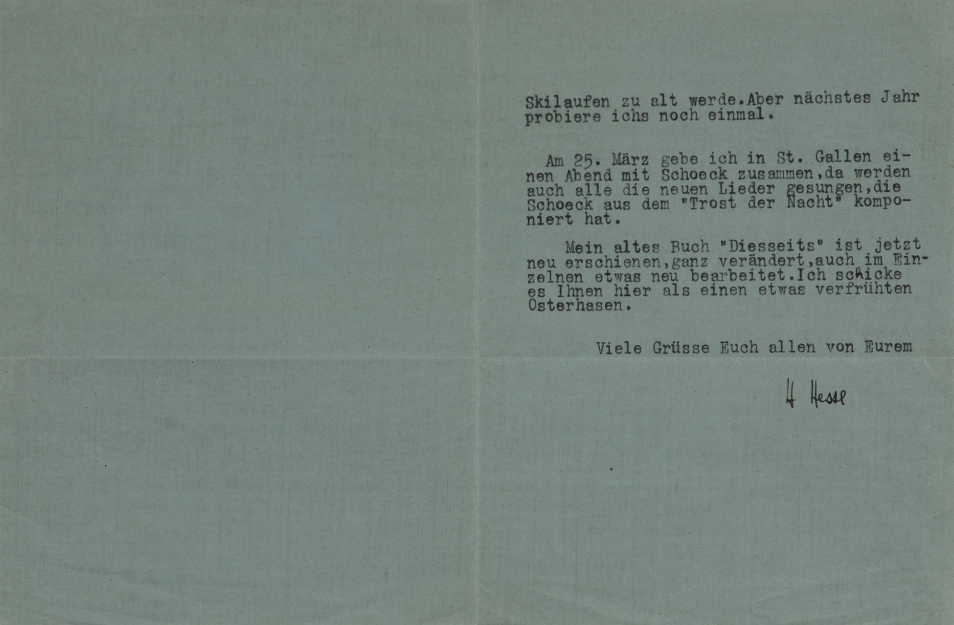 Aquarell und mit Schreibmaschine getippter Brief an Tilly Wassmer. H 185 mm B 280 mm.