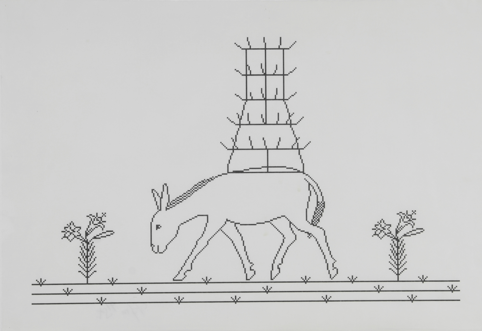 Serie von Computerzeichnungen, Unikate. Je H 415 mm B 605 mm.