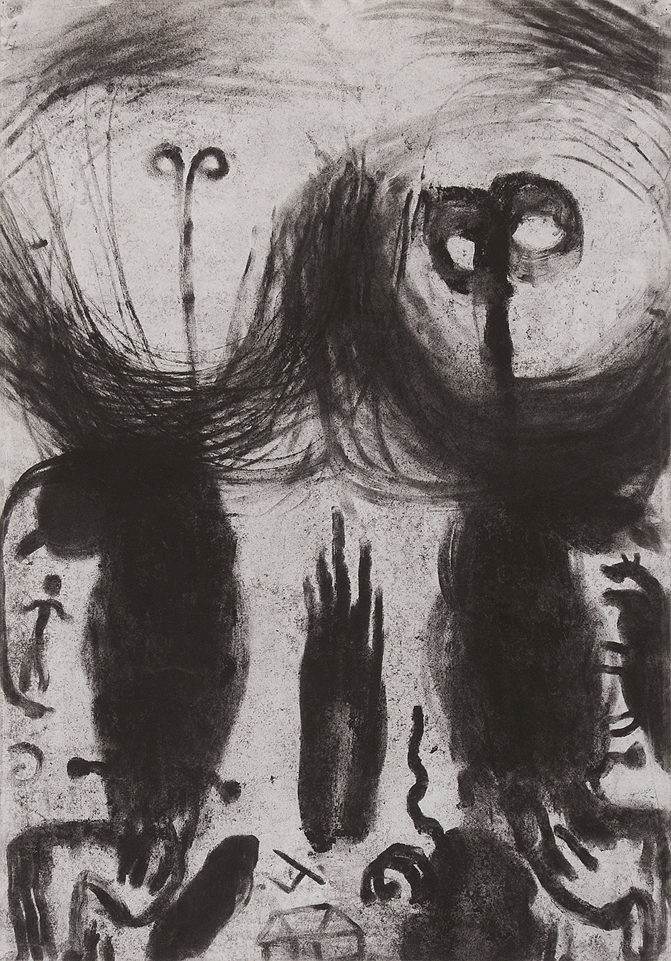 "Miriam Cahn (1949), L.I.S. rechts + links (bl. arb), 3.10.1987". (Beide Rahmen). (2).