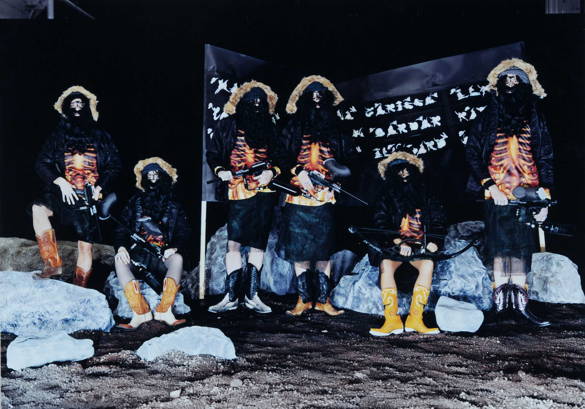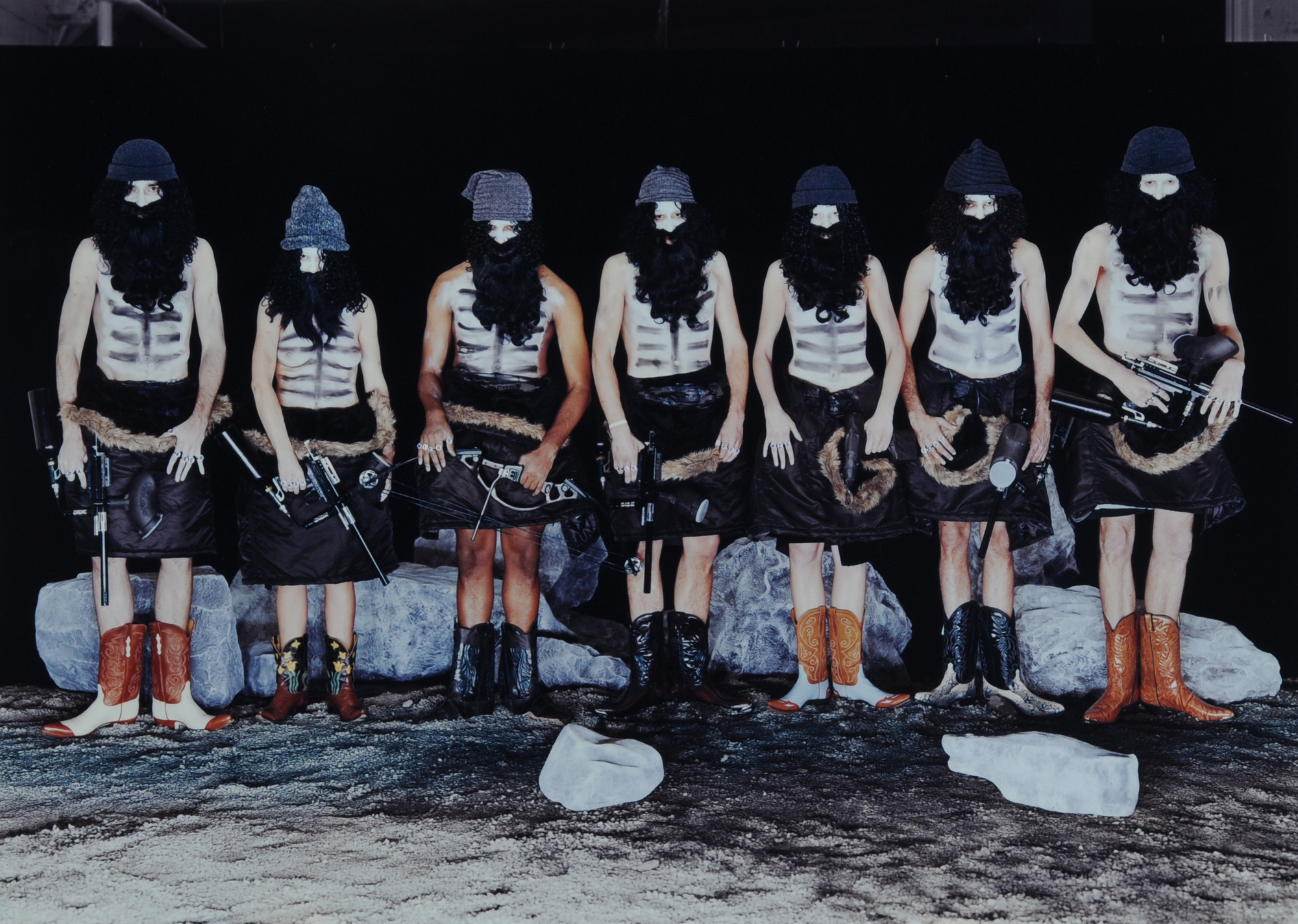 Olaf Breuning, 4 Fotografien: Lara, 1998; Rainbow, 2000; Camp I-V, I, 2002; Camp I-V, IV, 2002