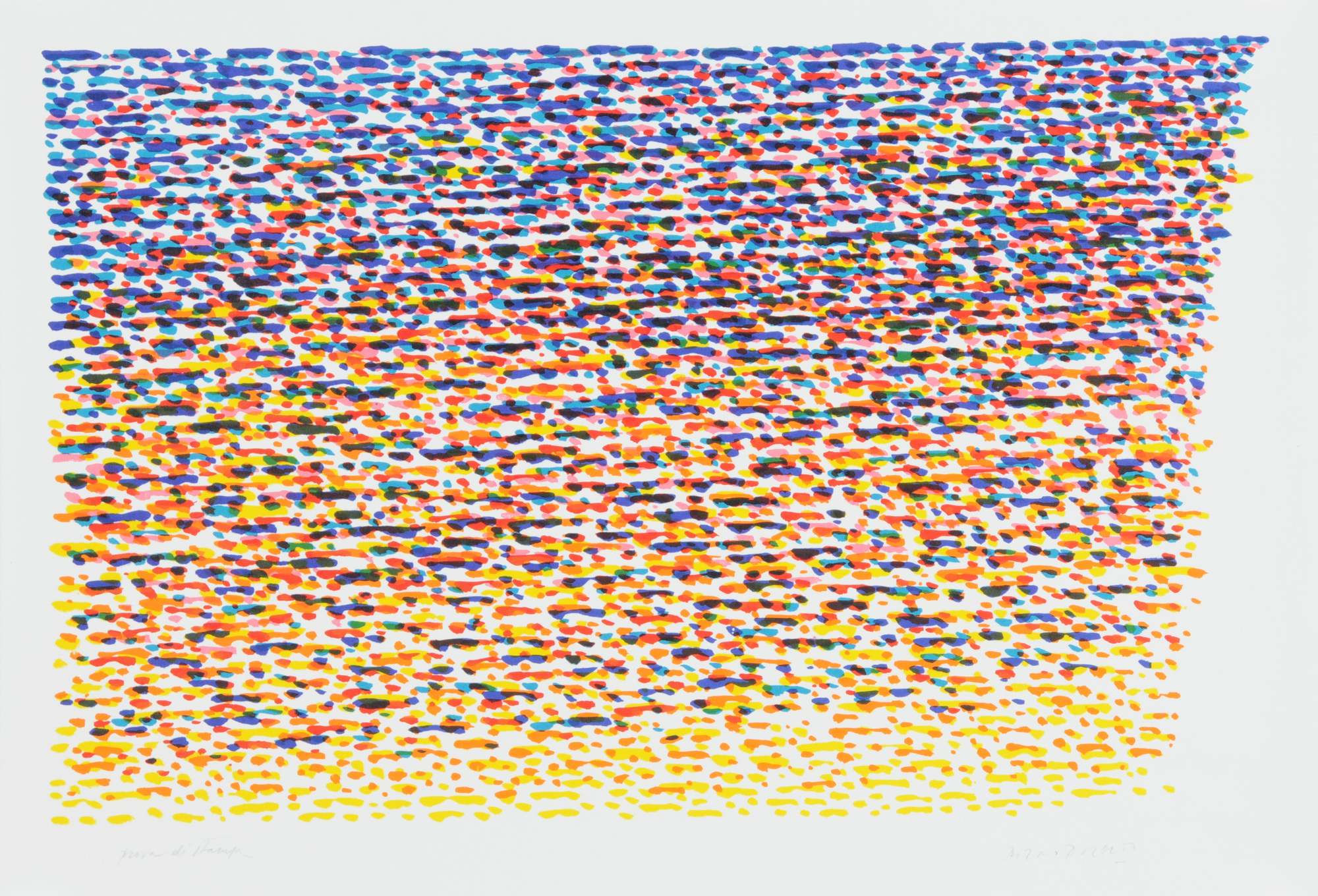 Alle Blätter unten rechts signiert: Piero Dorazio oder Dorazio. Alle nummeriert. 7 Blätter datiert, 2 Blätter betitelt. Alle unten links Blindstempel: Erker Presse, St. Gallen. (8).