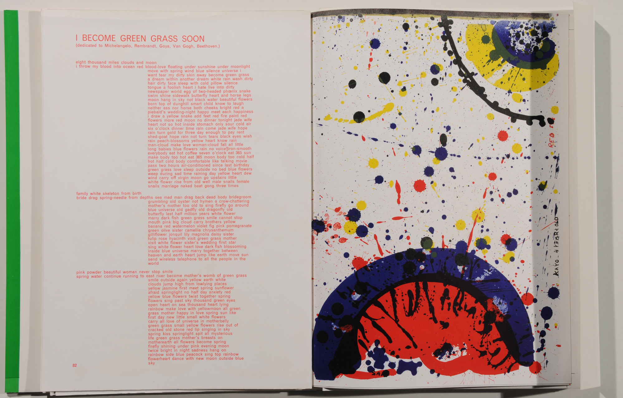 62 Farblithografien von P. Alechinsky, K. Appel, E. Baj, J. Dine, S. Francis, A. Jorn, R. Lichtenstein, J. Mitchell, C. Oldenburg, M. Ramos, J.-P. Riopelle, W. Ting, A. Warhol, T. Wesselmann etc. Texte von Walasse Ting.