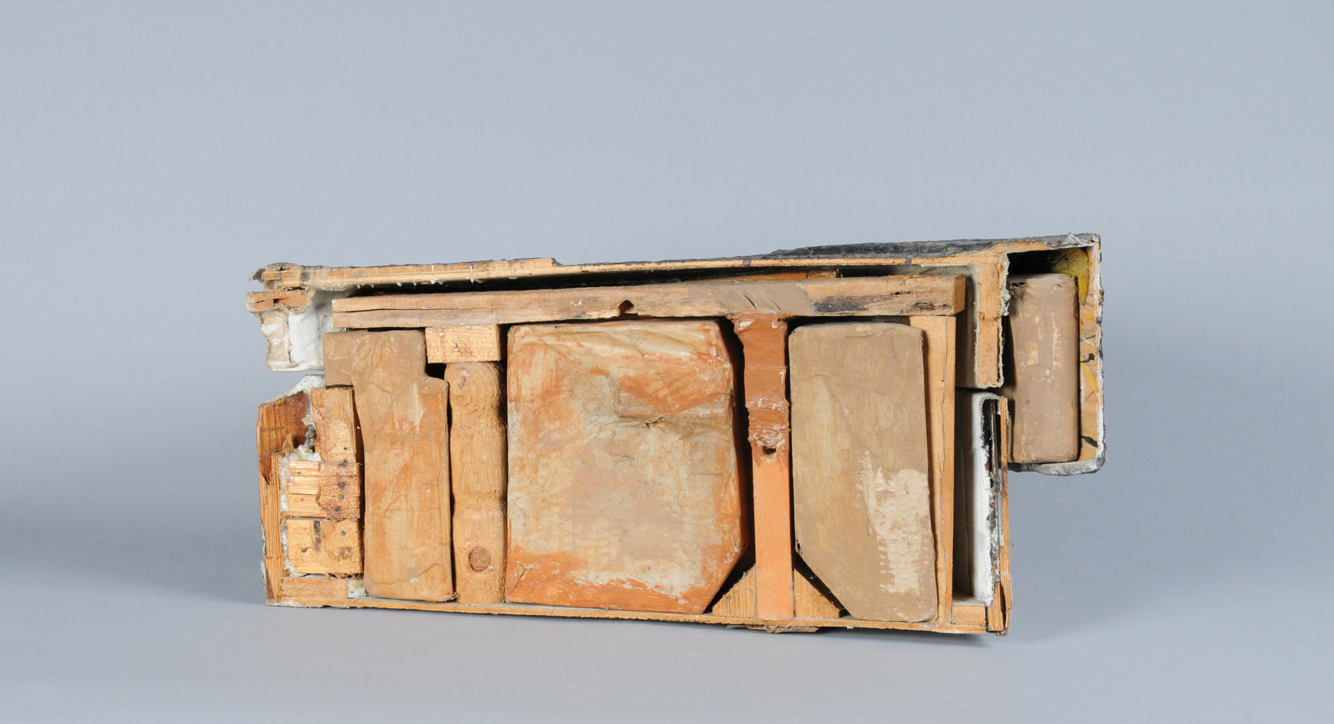 Objekt, 10-teilig: Holz, Karton und Leinwand bemalt.