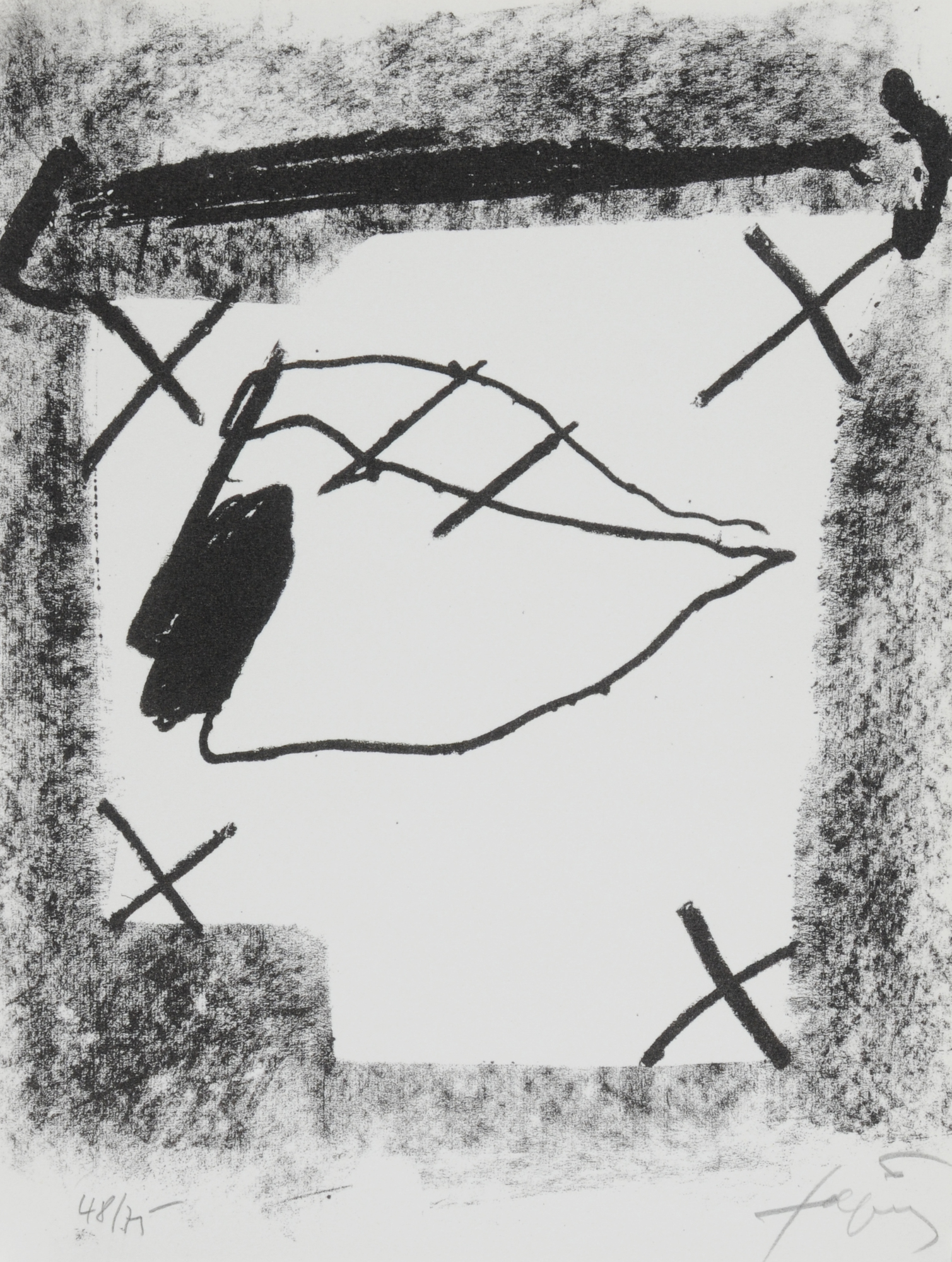 Both sheets 48/75. Lower right signed: Tàpies. Signed in the colophon by both artists: Schmalenbach; Tàpies. Handwritten numbering: 48.