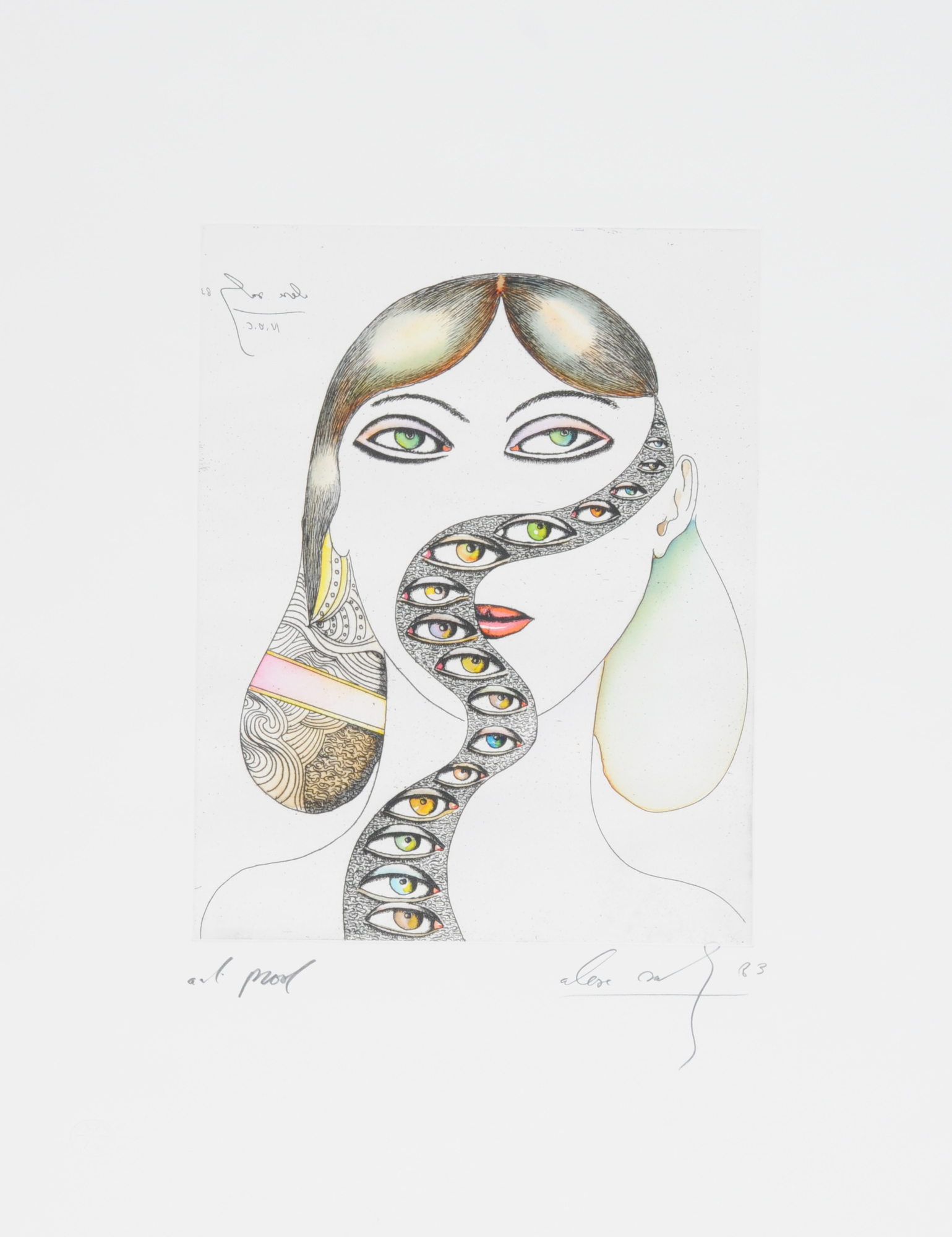 Etchings, 2 of them reworked in colors.