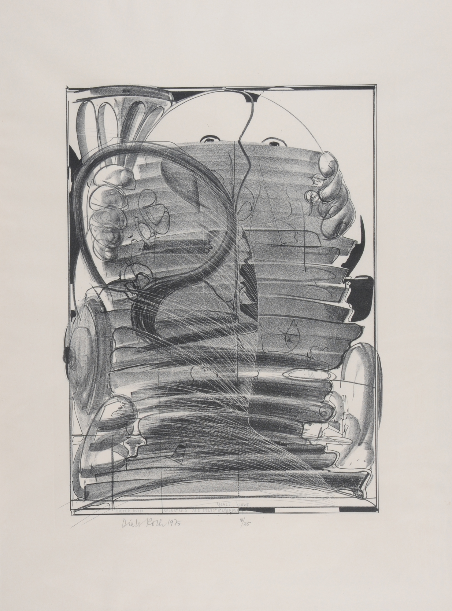 Dieter Roth, 2 sheets: Eine Brücke, 1989; Selbstbild als Selbstbildnishaltender Löwe, 1. Condition, 1975