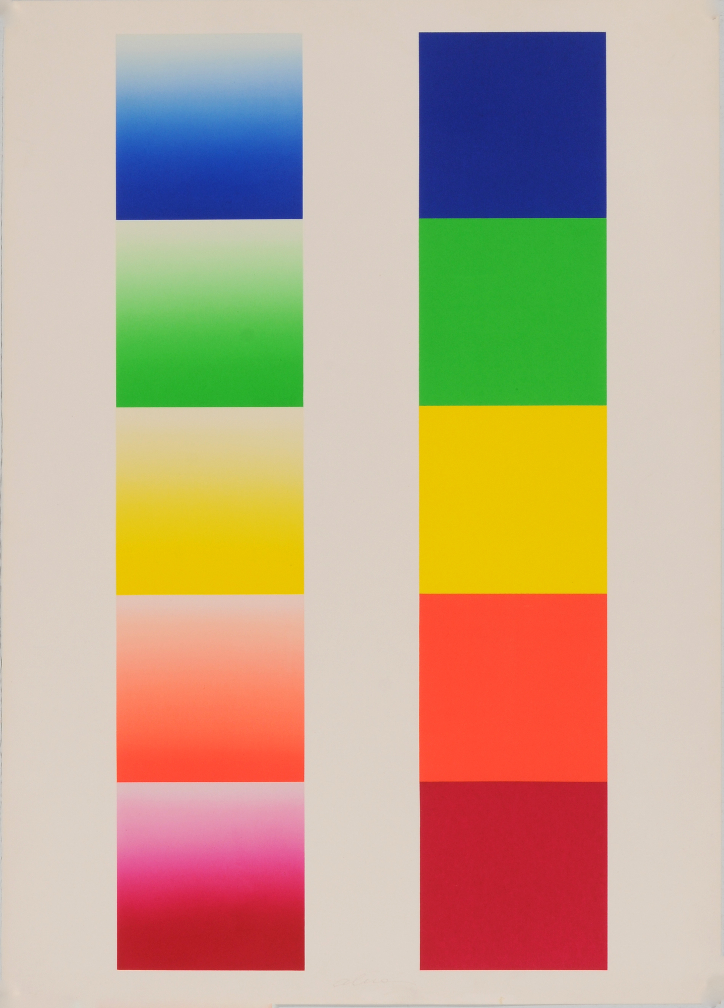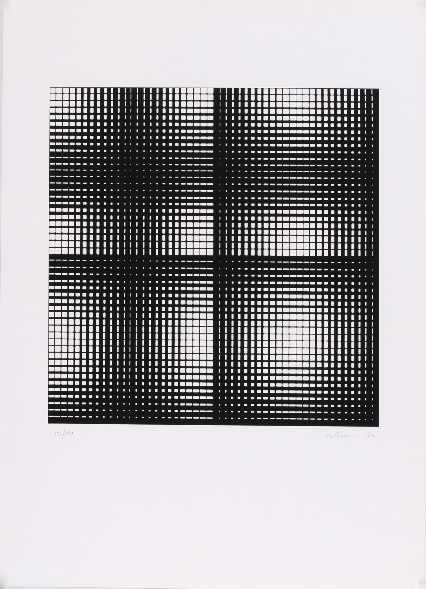 With it: 2 sheets, Senza titolo, Lithographs printed in colors. H 700 mm W 500 mm; H 720 mm W 520 mm. One sheet 136/150. Both sheets signed lower right and cetrally: Alviani. One sheet lower right dated: 62. (3).
