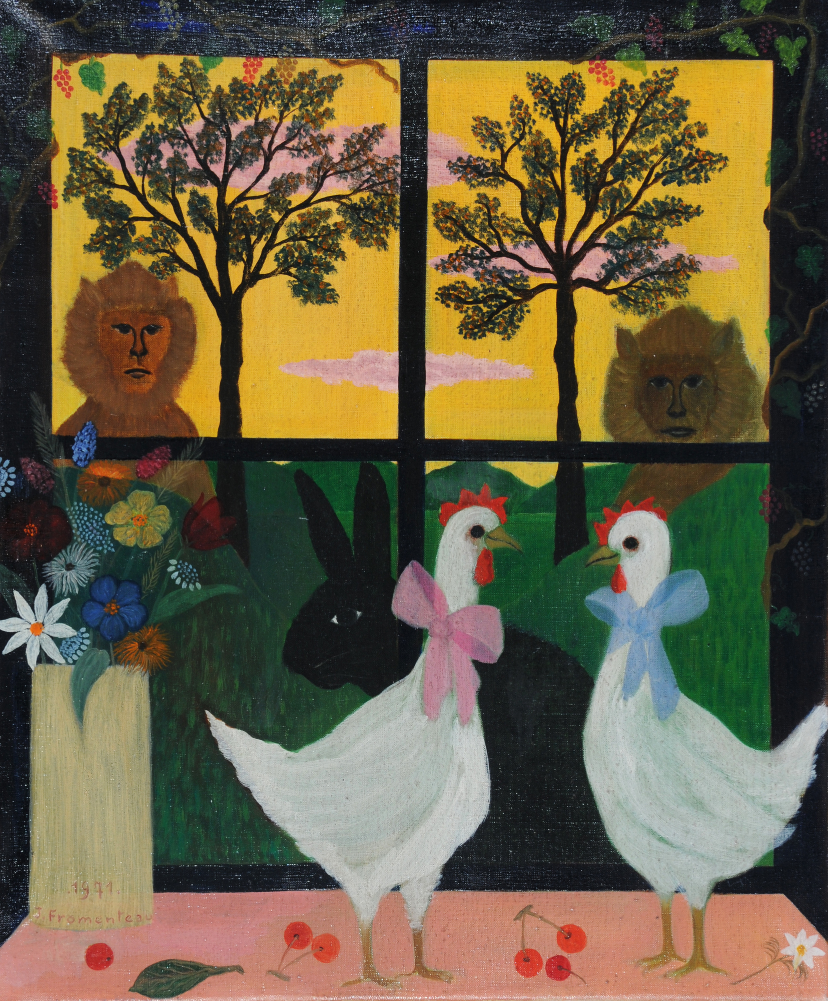 All signed and dated lower and upper left: Jacqueline Fromenteau/J. Fromenteau, 2 Decembre 1971/1971. (2 works with frame). (3).