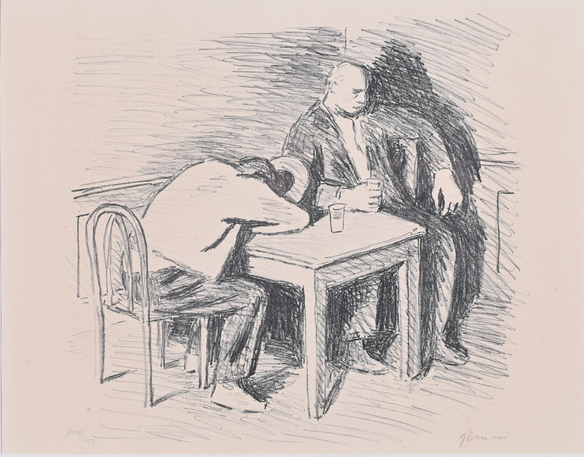With it: Wilhelm Gimmi. 2 lithographs: Untitled. H 320 mm B 430 mm; H 430 mm B 320 mm. 149/200; 76/200. Both signed. (Both in frame). (4).