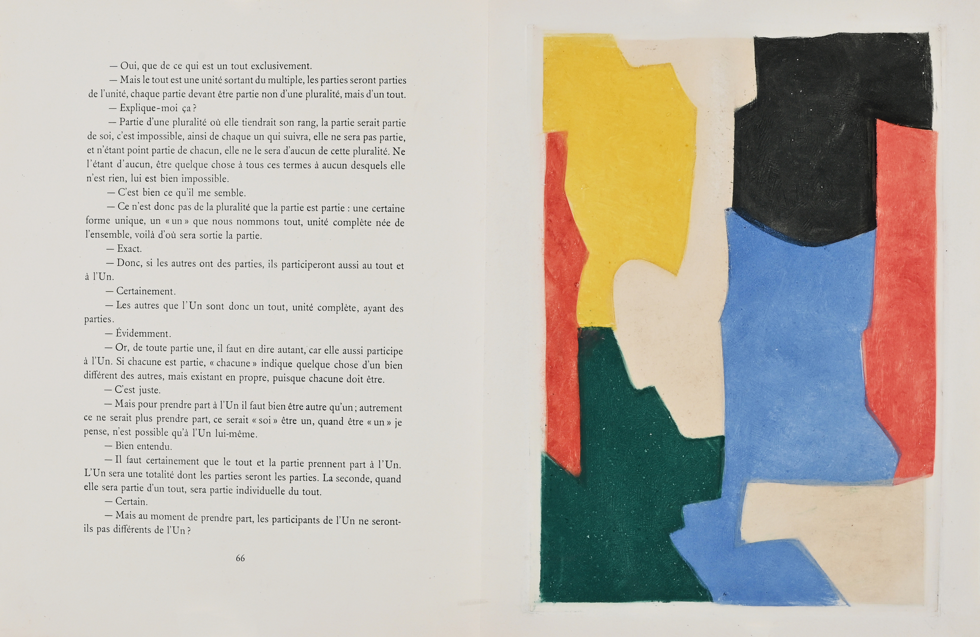Hand-signed by both artists in the imprint. Numbered typographically there: Exemplar 80. The etchings were created in collaboration with Jean Signovert and were printed by him in. Text pages in folio, in linen folder, in linen slipcase.