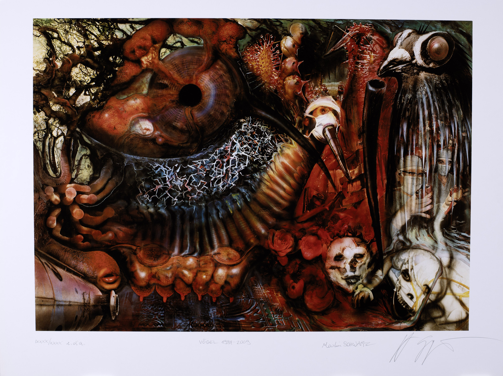 HR Giger / Martin Schwarz, 3 sheets: Schlangenlandschaft, 1984/2008; Karavane, 1948-2009; Vögel, 1984-2009