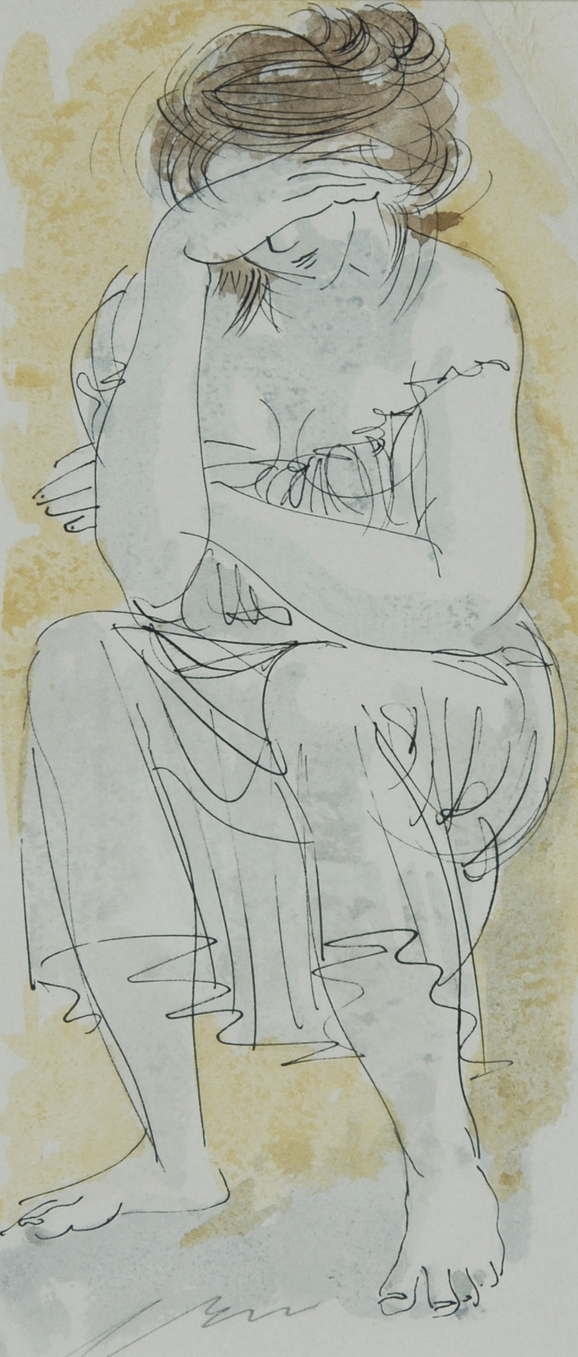 Ink drawing, watercolored.